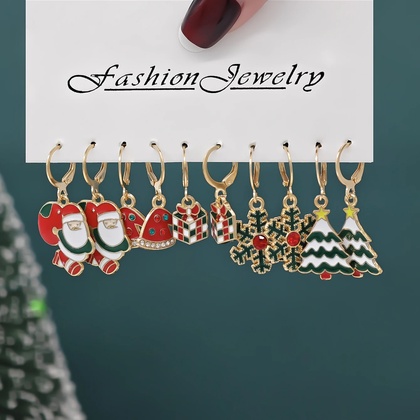 10Pcs Christmas Alloy Earrings Christmas Hat Colorful Star Diamond Studded Christmas Tree Reindeer Gingerbread Man Earrings