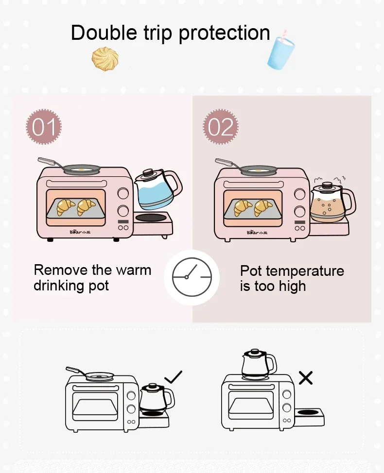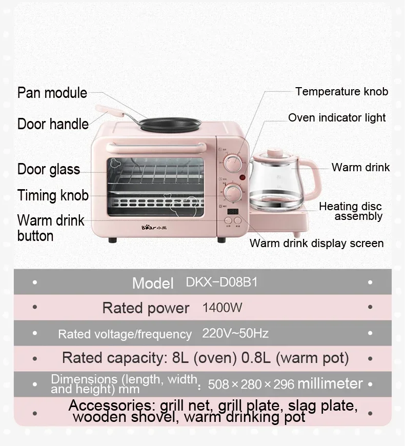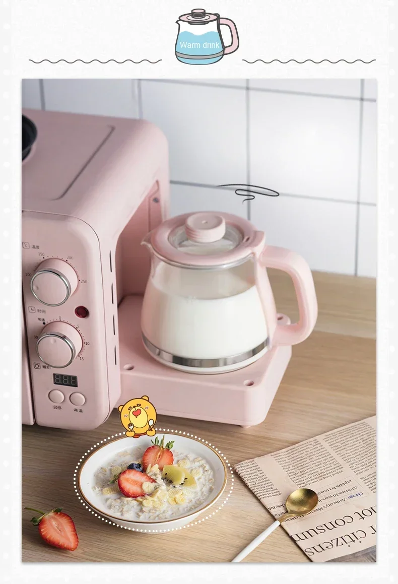 Multifunction Breakfast Machine Mini Household Electric Oven Cake Baking Fry Pan Warm Drinking Pot Toaster